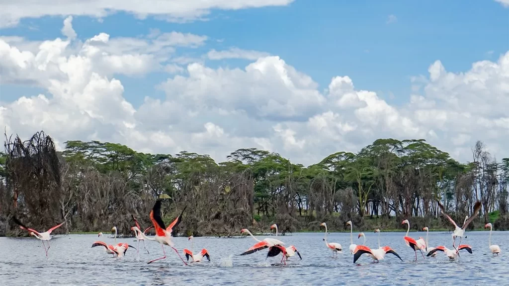 Lake Naivasha is a freshwater lake, in the Great Rift Valley of Kenya, situated around 90 kilometres northwest of Nairobi. It is one of the few freshwater lakes in the Rift Valley and is renowned for its stunning beauty, diverse wildlife, and rich cultural heritage. Key features are; greenery and scenic landscapes. The lake is framed by acacia woodlands, papyrus swamps, and Birdlife hosting over 400 bird species, including fish eagles, pelicans, and flamingos. It’s a significant destination for migratory birds. Wildlife sanctuary, the region around the lake is geothermally active hot springs like Olkaria Geothermal Spa, flower farms, and cultural and historical sites like Hells Gate National Park.